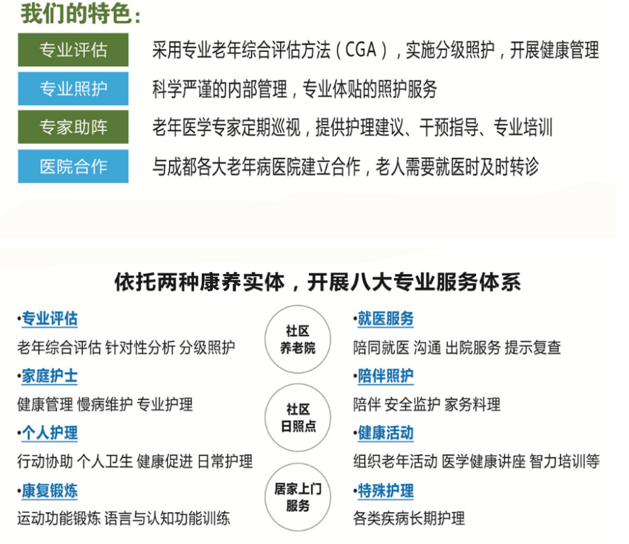 成都怡倍康養(yǎng)老服務(wù)有限公司是一家按照“康養(yǎng)結(jié)合”模式運(yùn)營(yíng)的專業(yè)化養(yǎng)老機(jī)構(gòu)。我們與四川大學(xué)華西醫(yī)院老年醫(yī)學(xué)中心合作,專注于社區(qū)養(yǎng)老,并在實(shí)踐中堅(jiān)持關(guān)注老年人身心健康。